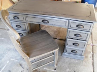 Isn't it pretty? And wouldn't you know it, I just happened to have a similar desk just waiting for me to do something with it in the garage.